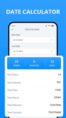 The ager finder app calculates your actual age with multiple options. This date tracker shows you the complete timeline in hours, minutes, seconds, and even in milliseconds.
