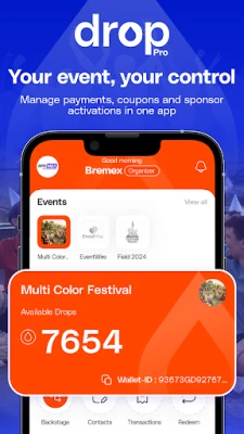 Drop Pro is the essential companion app for event organizers, sponsors, and merchants, designed to streamline payment processes and simplify operations at events. No more plastic tokens, printed vouchers, or manual handling of transactions—Drop Pro enables a fully digital, sustainable, and efficient event experience.