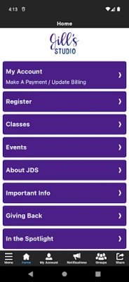 WELCOME TO Jill's Studio The Jill's Studio app allows you to manage your account with ease, register for classes, parties, and special events. You'll also receive important notifications about class changes, closings, registration openings, special announcements, and upcoming events.