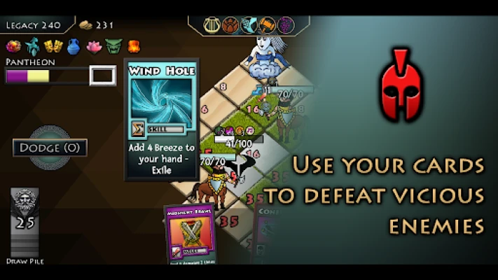 Defeat Greek mythology heroes and monsters on your quest as Kronos to dethrone your son all mighty Zeus. Gather various cards and build the best deck to unleash powerful combos and effects.