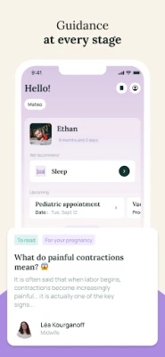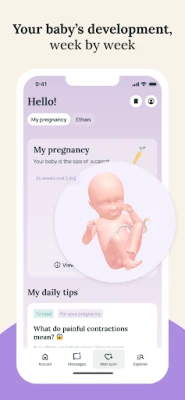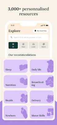 - Receive daily personalised tips based on your cycle, pregnancy stage, or your baby’s age.
