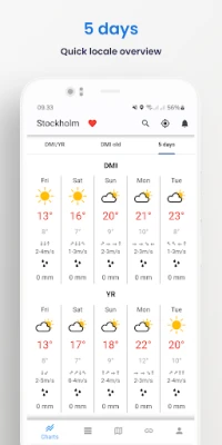 This powerful weather app combines detailed data from the Danish Meteorological Institute (DMI) and Norwegian Meteorological Institute (MET / YR.no) to deliver accurate and comparable real-time forecasts anywhere in the world.